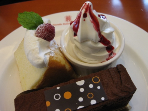 好きなケーキ1個、シフォンケーキ、ソフトクリームが